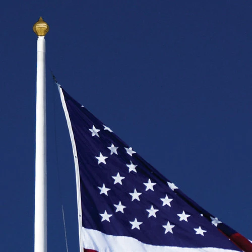 The 8′ x 12′ polyester Patriarch® US flag and 8′ x 12′ nylon Beacon® US flag are both great choices with this flagpole. If the flag is displayed day and night, the US Flag Code calls for illumination; our commercial above-ground lights work well in that capacity. Questions? Please fill out our contact us form and one of our customer care representatives will reach out to you!