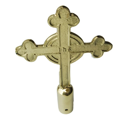 Our 7 ¾” Aluminum Catholic Cross Flagpole Ornament will work beautifully with our Majestic™ Telescopic Aluminum Poles. With a bright, golden finish, this Catholic Cross is sure to add an extra level of attractiveness to your indoor flag set. The provided set screw will allow for secure placement on the top of your flagpole. This flagpole ornament is intended for use with our Indoor Catholic Papal Flag Sets. For more information on this set, please see or description tab below. To order this ornament, enter your desired quantity and click “Add to Cart”.