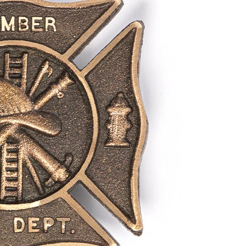 The fire department grave markers are molded in detailed casts to produce a detailed and intricate tribute to all fire fighters. The markers are finished with a layer of bronze lacquer to bring out the rich bronze tones and add a layer of protection against weathering. This tough outer finish requires no maintenance at all.