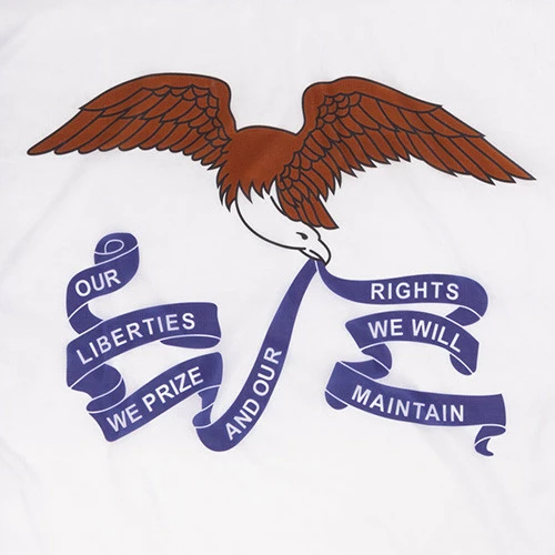 Honor the history and rich culture of the Hawkeye State with premium products. In addition to our outdoor flags, you can buy indoor Iowa flags lined with elegant gold fringe for display in your school, office, or church. Purchase our indoor flags separately or as part of a flag set to create beautiful flag displays. Each indoor flag set comes with a jointed oak flagpole, indoor flag, eagle flagpole topper, and gold cord and tassel. Shop our Iowa flag category page for the full list of Iowa state banners and flags for sale and more in-depth history of the Iowa state flag.
