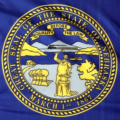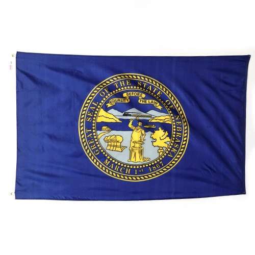 Celebrate the state of Nebraska indoors and outdoors with our robust selection of state flags. In addition to our outdoor flags, we sell indoor Nebraska flags too! These flags are finished with a pole sleeve instead of brass grommets and feature an elegant gold fringe. We also sell Nebraska banner flags and stick flags so you can demonstrate your love for the state of Nebraska anywhere. View our Nebraska flag category page for full selection.