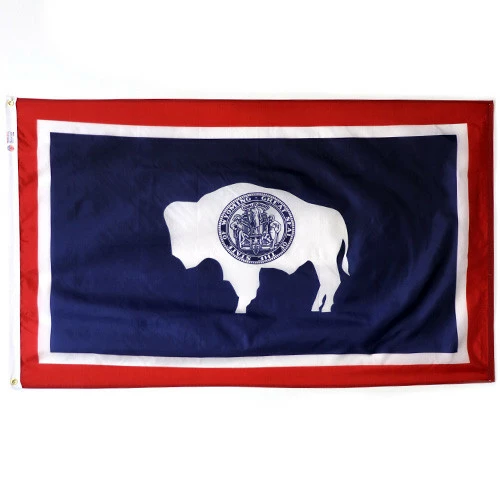 Celebrate the equality of state by pairing the state flag of Wyoming with other quality products. Our outdoor American flags come in fabrics that match outdoor Beacon® nylon and Patriarch® polyester US state flags. Our Patriarch® polyester and Beacon® Nylon American Flags have a six-month guarantee against tearing, fraying, and defeats. When ordering an outdoor US flag, choose one size larger than your state flag to avoid violating flag etiquette.